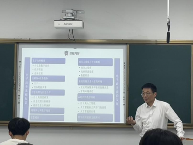 课堂上,陈涛教授首先从学科设置、学科发展、学科特色出发,介绍了华中科技大学91直播 数字政府相关课程和研究的渊源与发展,介绍《数字政府研究前沿》的课程内容。着重讲授了“数字政府概述”“互联网+政务服务”等内容,并鼓励大家结合数字政府建设案例积极思考。本次课程通过理论讲解和案例分享相结合,有助于91直播 学生掌握数字政府的基本概念及前沿发展,并对数字政府建设实践有了更深入的启发和感悟。(图文/91直播 温永林)