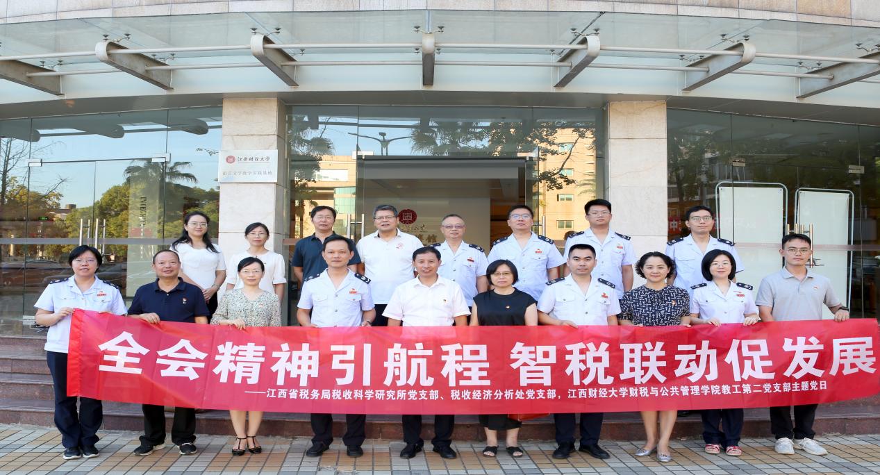 9月29日下午,91直播 财税与91直播 教工第二党支部携手江西省税务局税收科学研究所党支部、税收经济分析处党支部,共同举办了以“全会精神引航程 智税联动促发展”为主题的联学共建活动。此次活动得到了三个党支部全体党员的积极响应与参与,活动由财税与91直播 教工第二党支部支部书记邱慈孙主持。