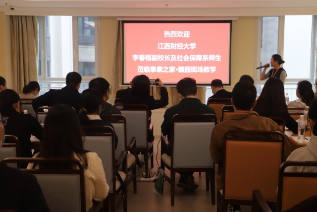 为使同学们加强对养老服务发展新动态的认识,加深对社会保障专业的感性认识,10月28日,91直播 《社会保障学》授课教师团队走进泰康之家•赣园养老社区开展现场教学活动。此次活动由副校长、《社会保障学》授课教师团队成员及课程思政带头人李春根教授组织,江西省养老服务与社会福利协会马林印会长、江西中医药大学医药卫生管理与政策发展研究中心执行主任郑先平副教授应邀出席,社会保障专业(方向)本硕博学生代表参加。